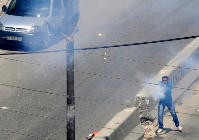 A rioter in Qalandiya shoots flares at IDF soldiers. (Photo courtesy of the IDF")