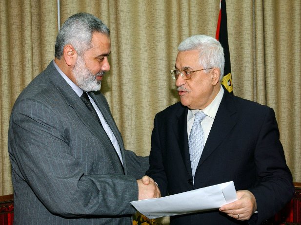 PM  Ismail Haniyeh  with  President Mahmoud Abbas. Photo credit    Palestinian Press Office